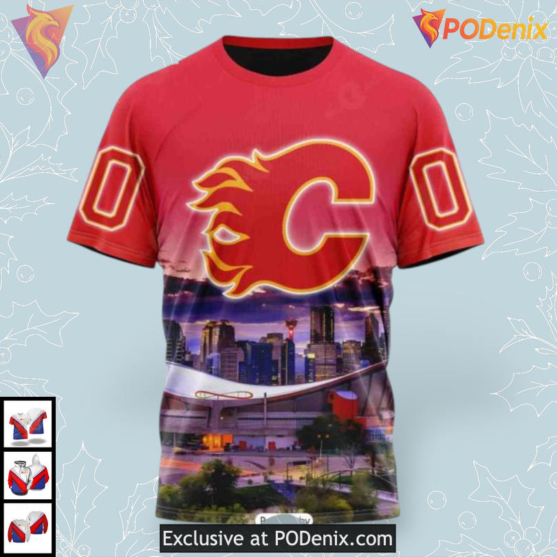 Personalized Calgary Flames 3D Sweatshirt Featuring City Skyline Artwork