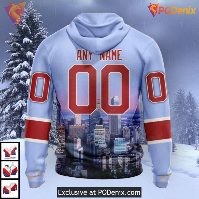 Product Information for City Skyline Custom Artwork NHL Montreal Canadiens Graphic Hoodie 3D: