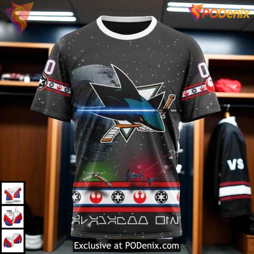 Custom San Jose Sharks Winter Apparel: Classic Star Wars Graphic Style Hoodie