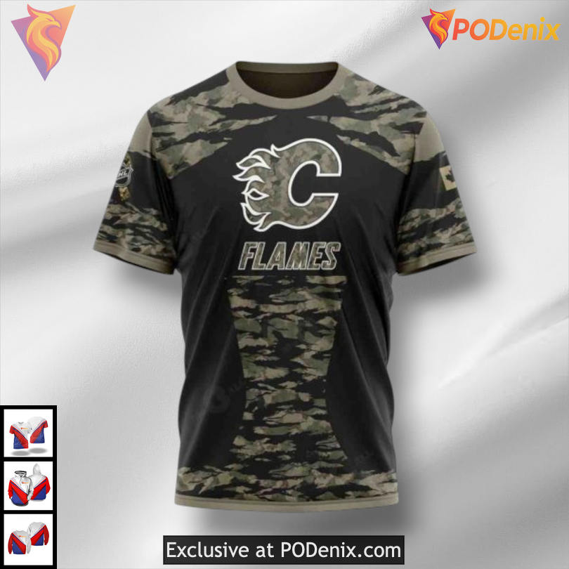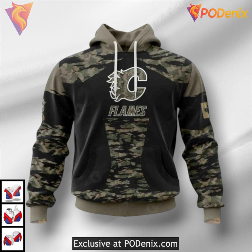 Custom Calgary Flames Military Member Hoodie with Camo Design for Fans