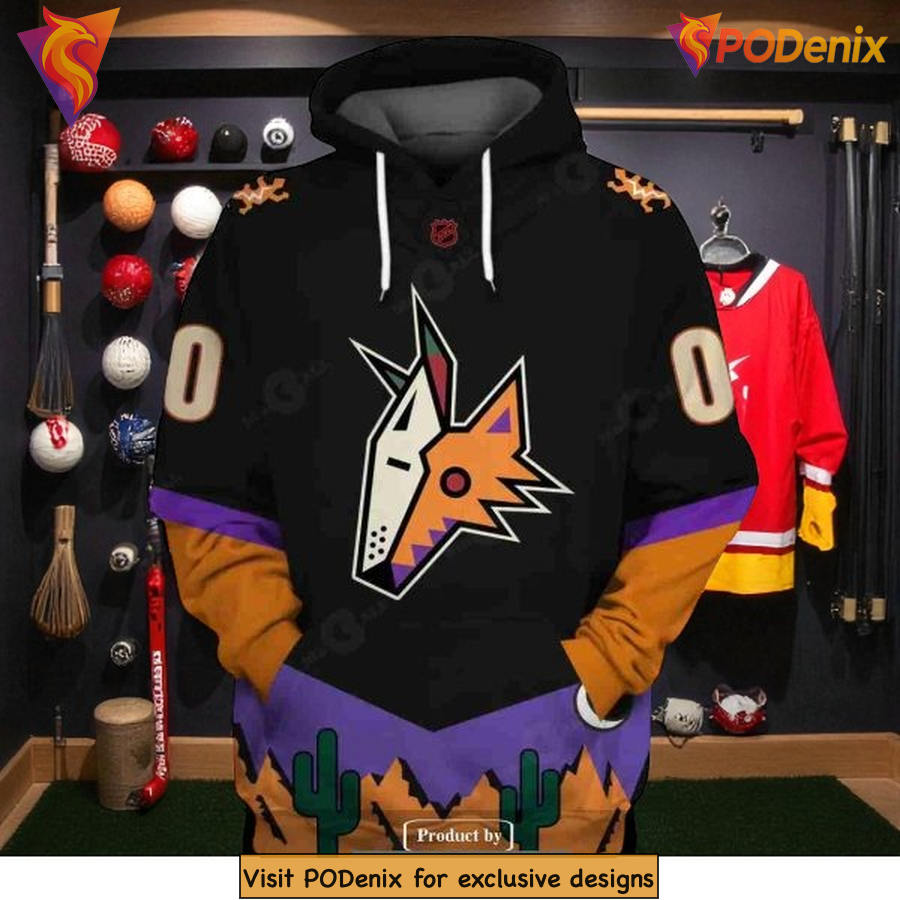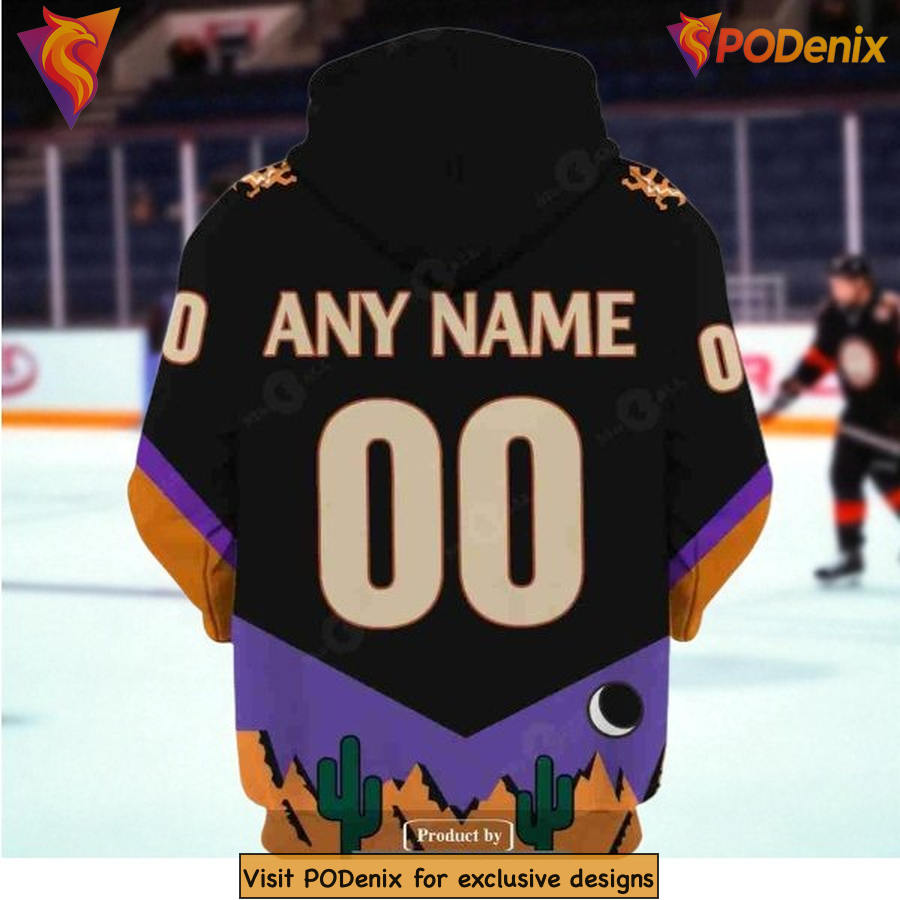 Custom Arizona Coyotes Hoodie 3D Retro Desert Design With Name And Number Features: