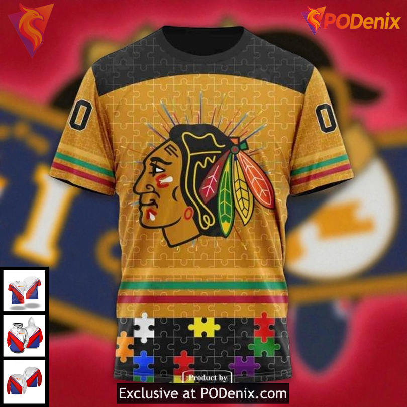 Custom Chicago Blackhawks Puzzle Hoodie – Fearless Against Autism Awareness