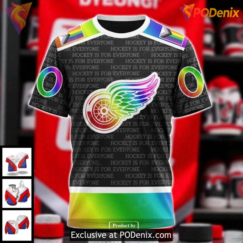 Custom Detroit Red Wings 3D Hoodie brings a vibrant pride gradient design inspired by the quote Hockey Is For Everyone. A bold mix of colors and fandom spirit makes this piece stand out while sharing your passion with confidence.