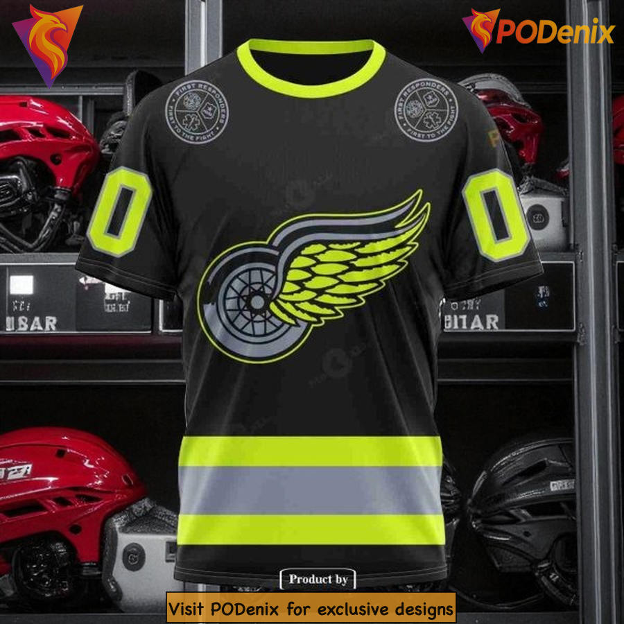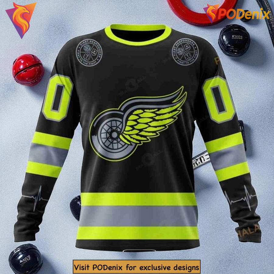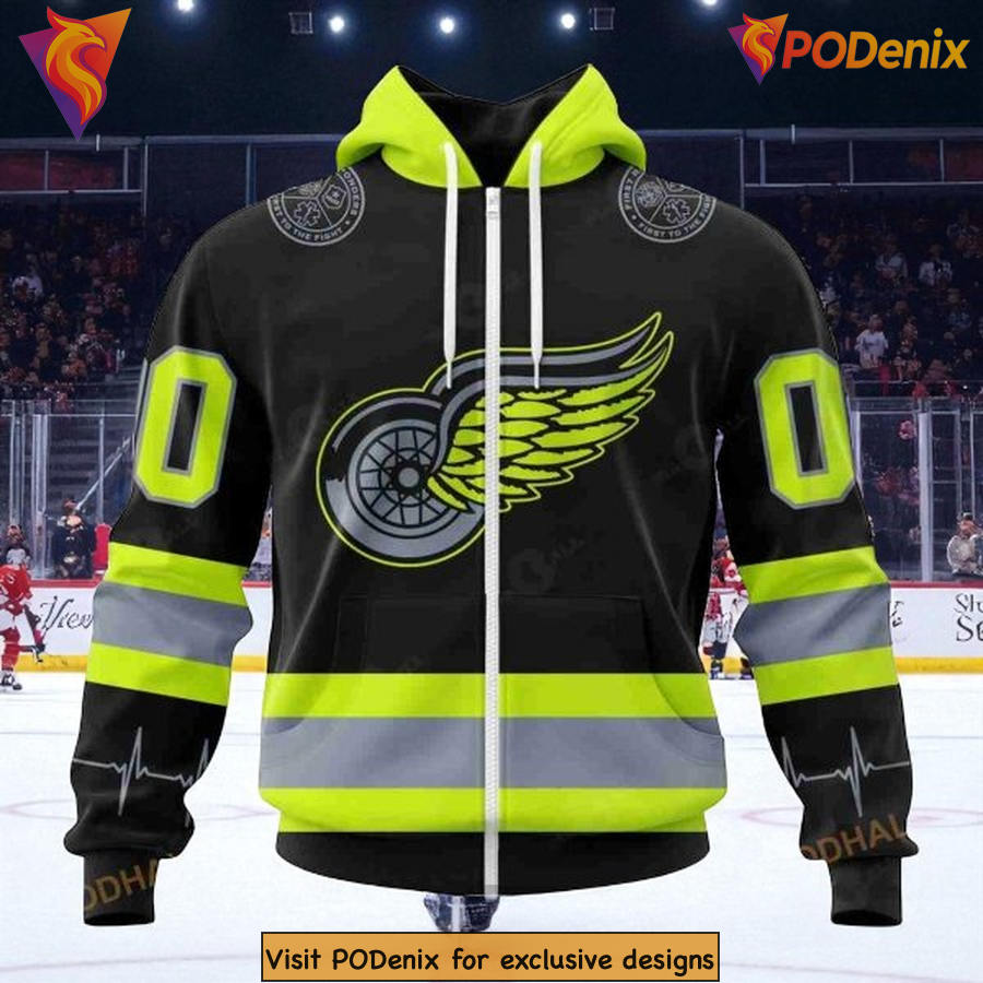Custom Detroit Red Wings Hoodie 3D, Firefighter Tribute Uniform Inspired Design Features: