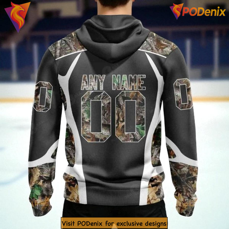 Custom Indianapolis Colts Hoodie 3D brings a bold hunting camo and black design to showcase team spirit. The quote Any Name 00 highlights your personal touch, making it a standout fan essential for every Colts supporter.