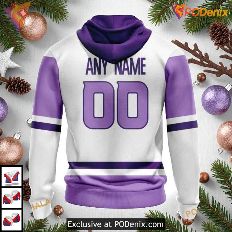Fans can enhance their game day outfits with this personalized NHL Ducks hoodie, a special piece designed to honor the Hockey Fights Cancer cause. Its creative elements make it a standout option in fan collections while offering meaningful representation.