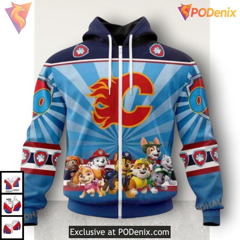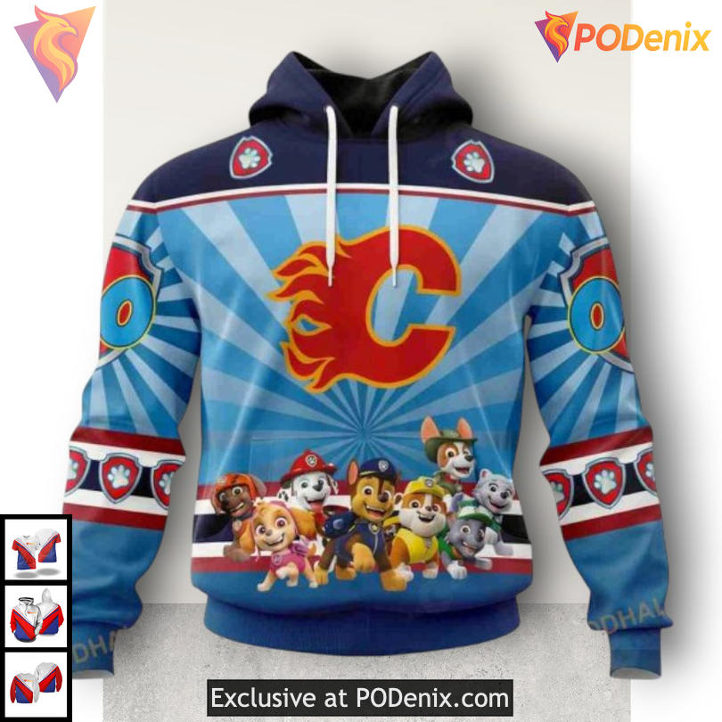Product Information for Custom Paw Patrol Design Calgary Flames Hoodie 3D NHL Team Sweatshirt: