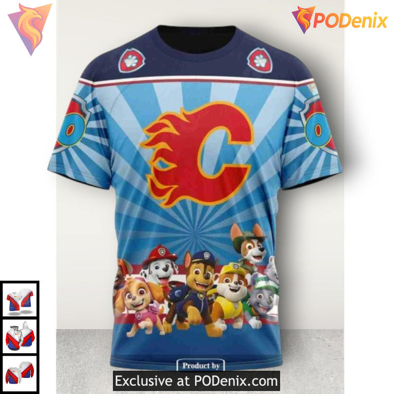 Custom Paw Patrol Calgary Flames Sweatshirt: Unique 3D Design for Hockey Fans