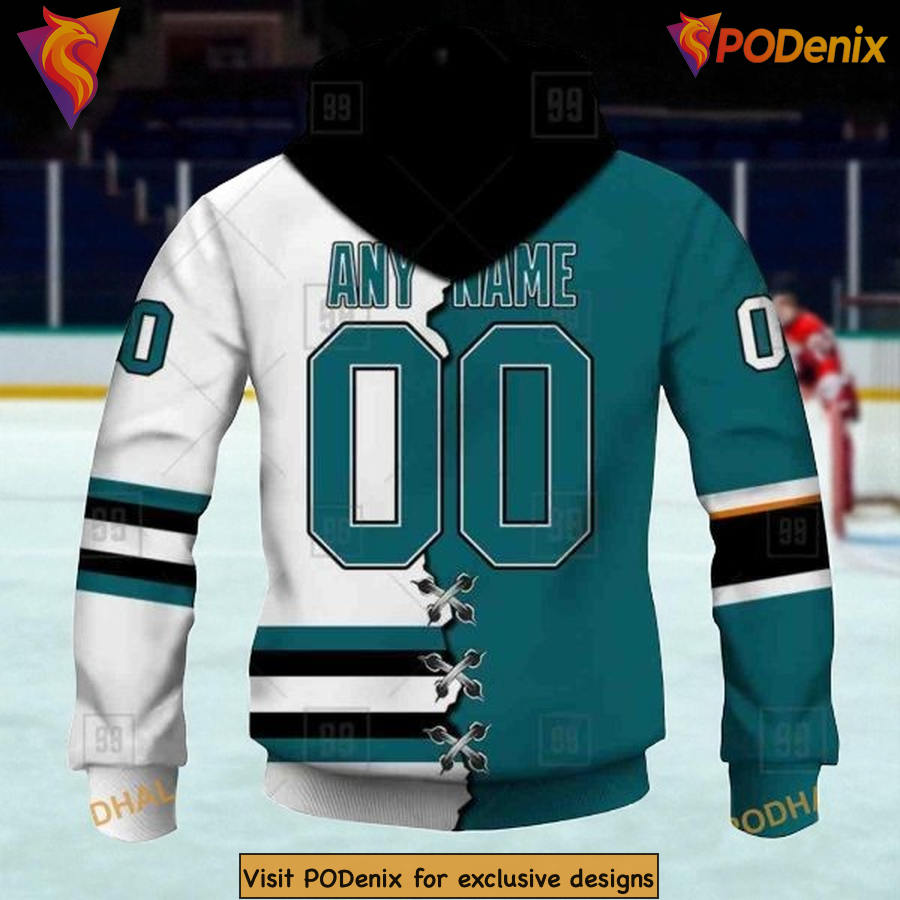 Custom San Jose Sharks Hoodie 3D, Mix Jersey 2025 Style With Any Name Features: