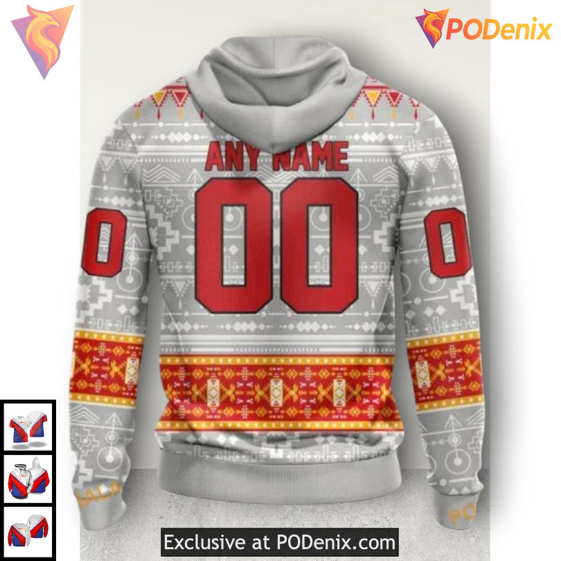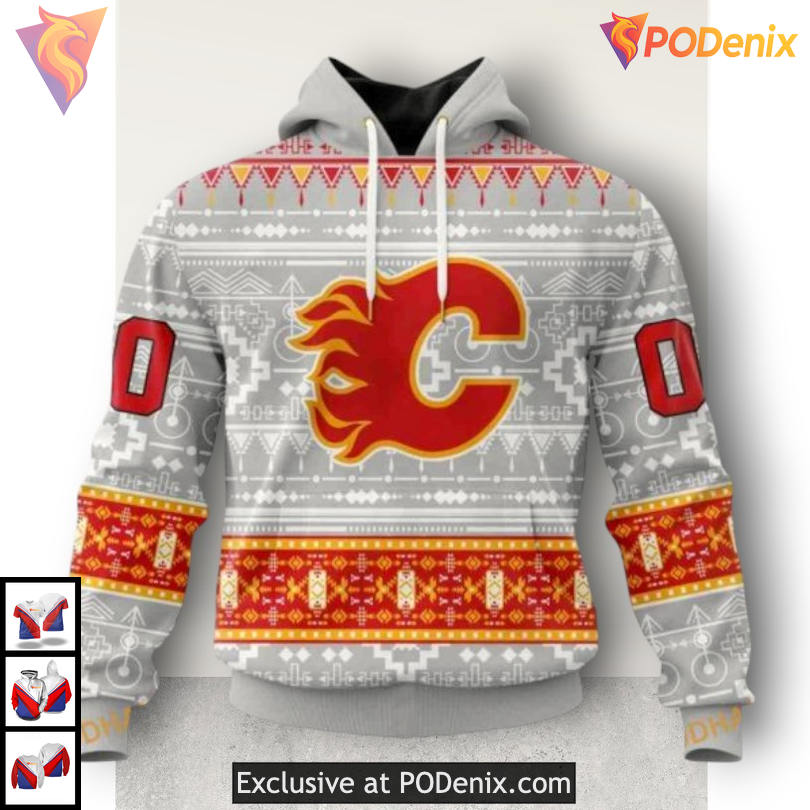 Product Information for Customized Native Pattern Calgary Flames Winter Hoodie 3D Sweatshirt: