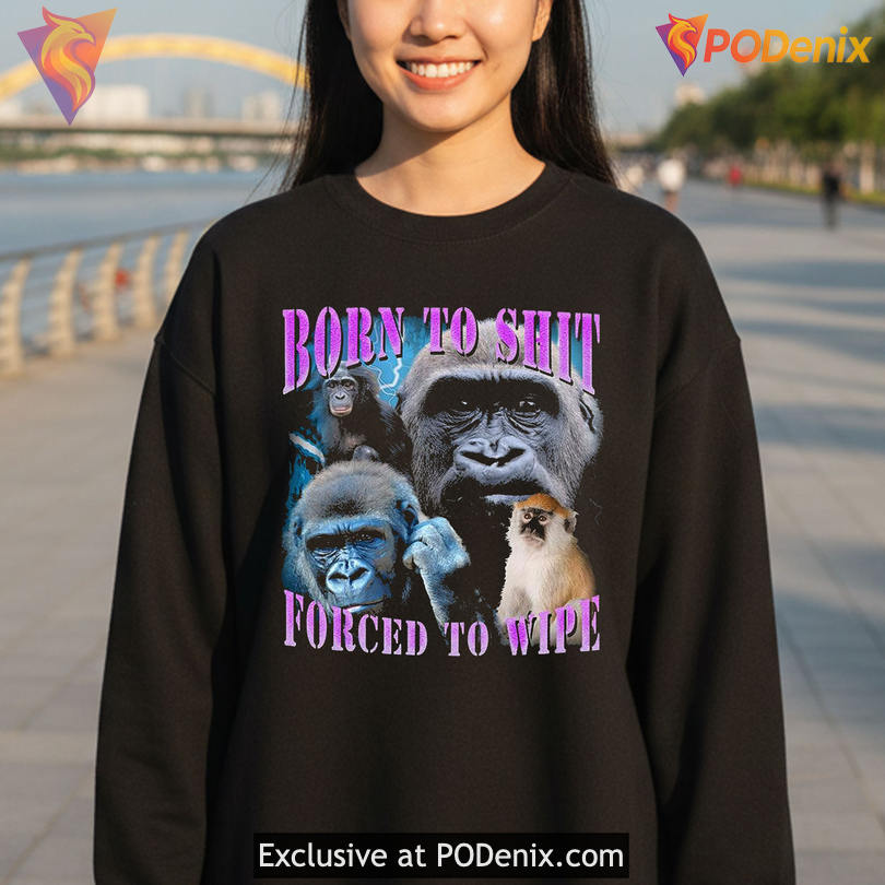 Wear the born to shit forced to wipe tee at your next get-together, and let the laughter flow as you bond with friends over shared humor and relatable experiences. This shirt is sure to spark joy and conversation.
