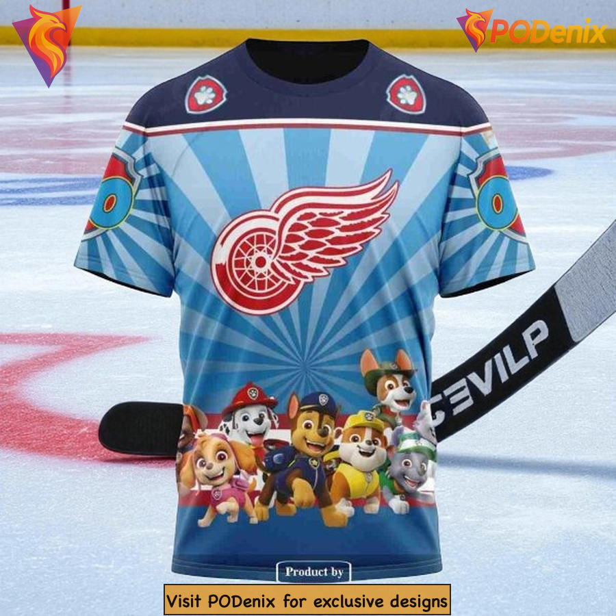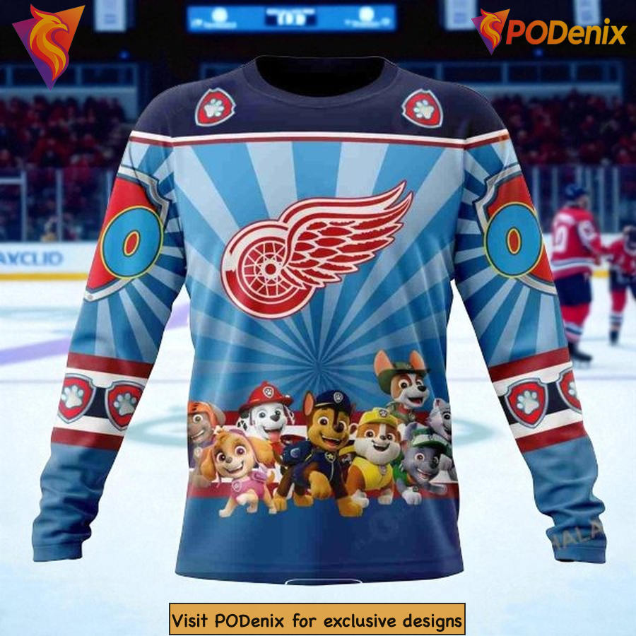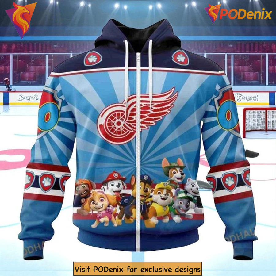 Detroit Red Wings Hoodie 3D Custom Paw Patrol Design, NHL Family Apparel Features:
