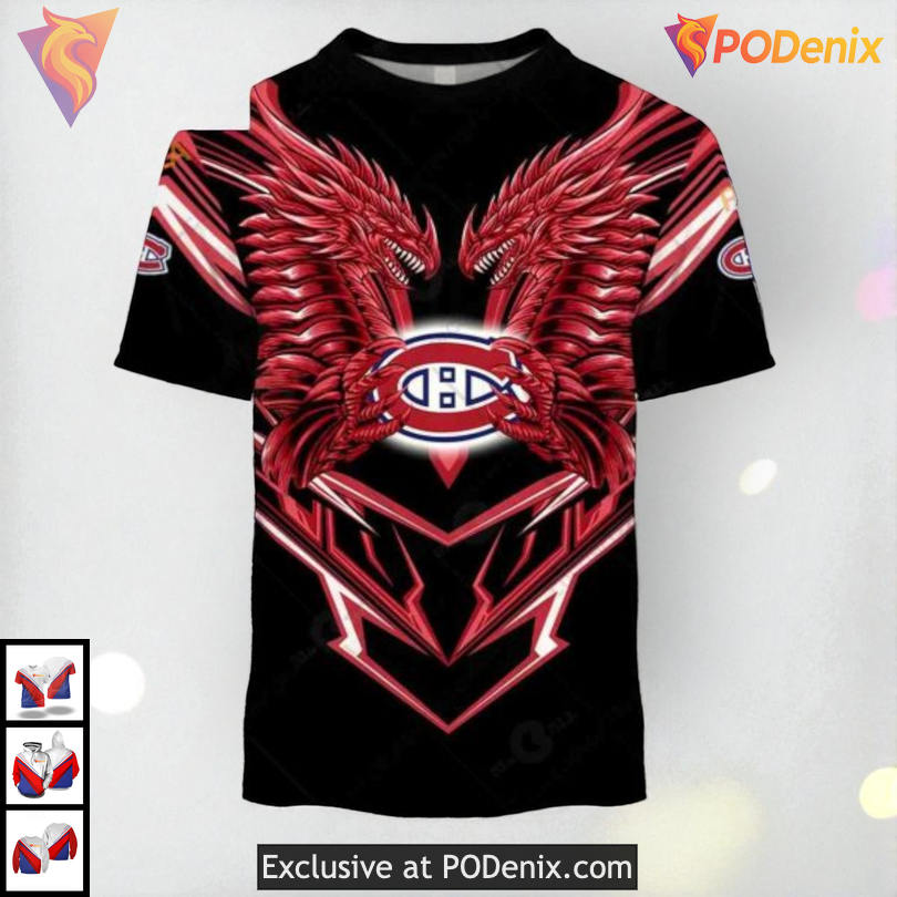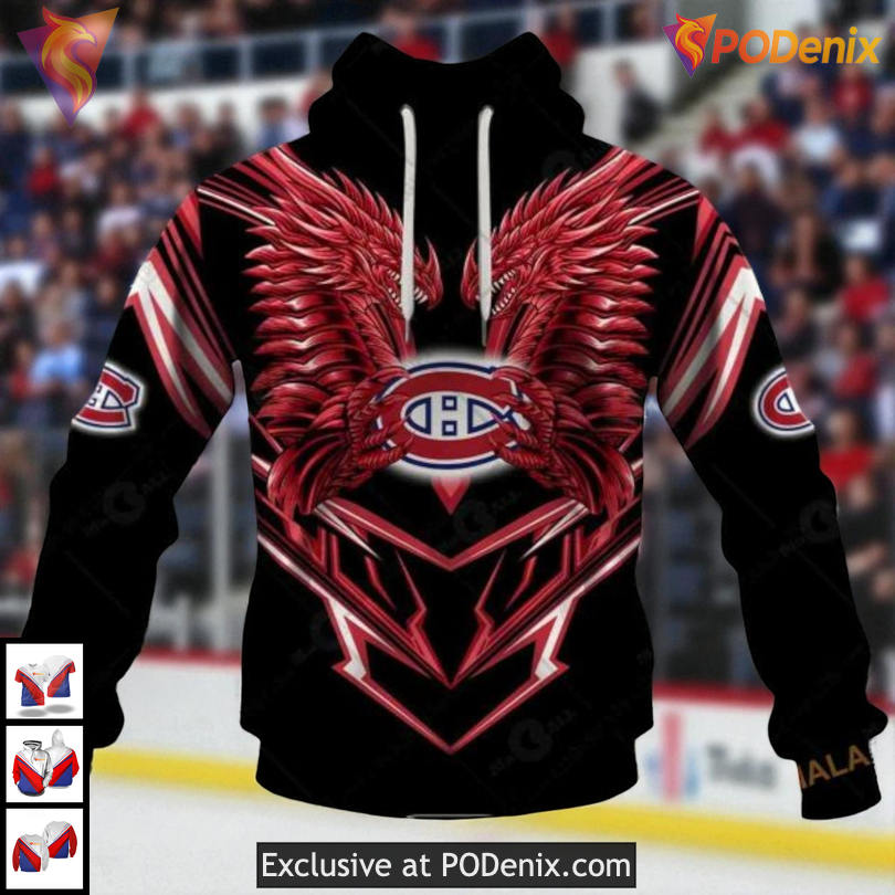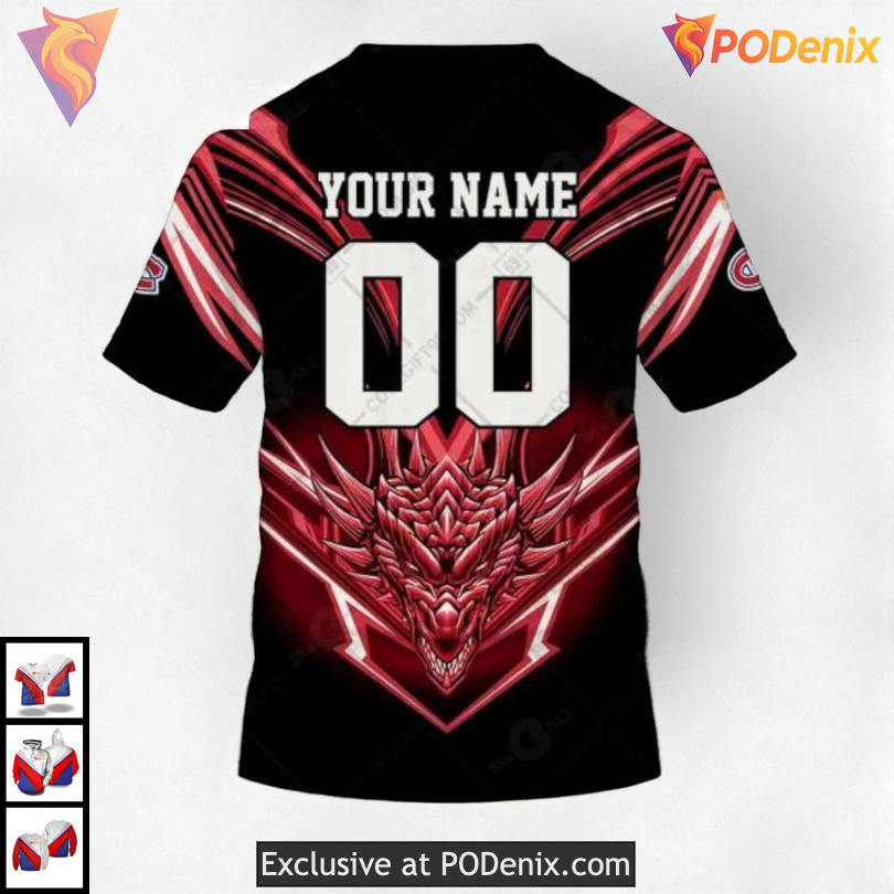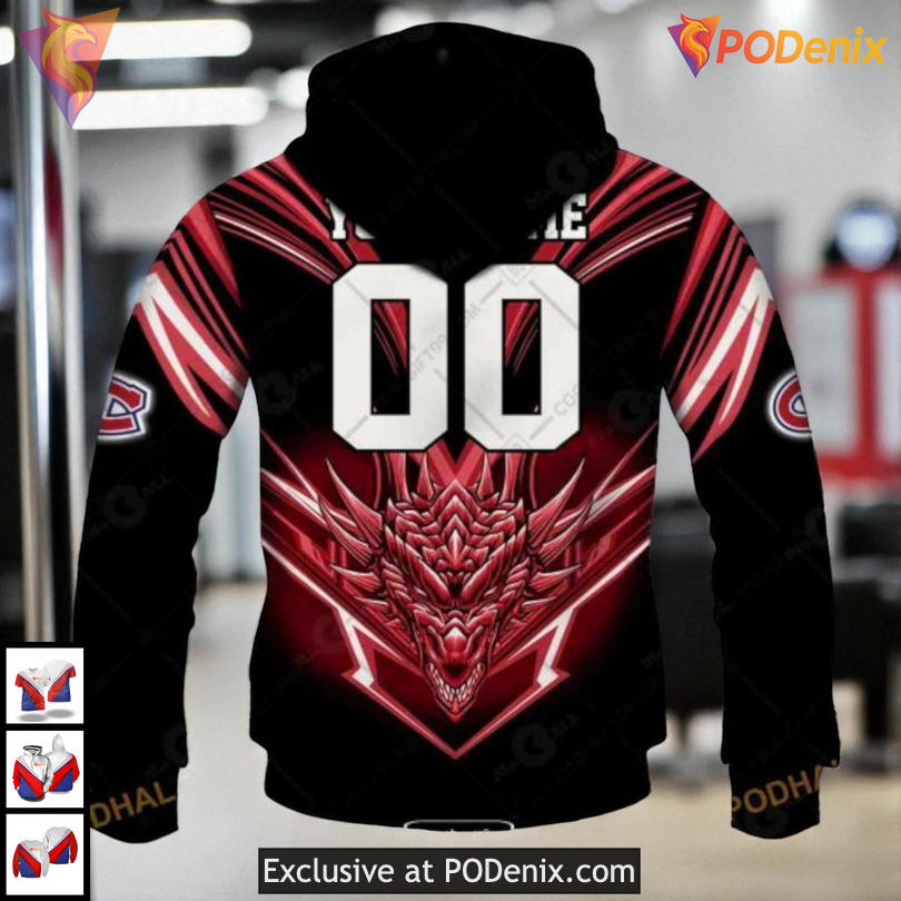 Custom 3D Montreal Canadiens Youth Hoodie with Unique Dragon Artwork
