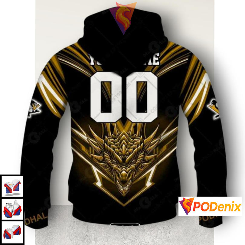 Product Information for Dragon Artwork Graphic Design Edition Retro Pittsburgh Penguins Hoodie NHL 3D: