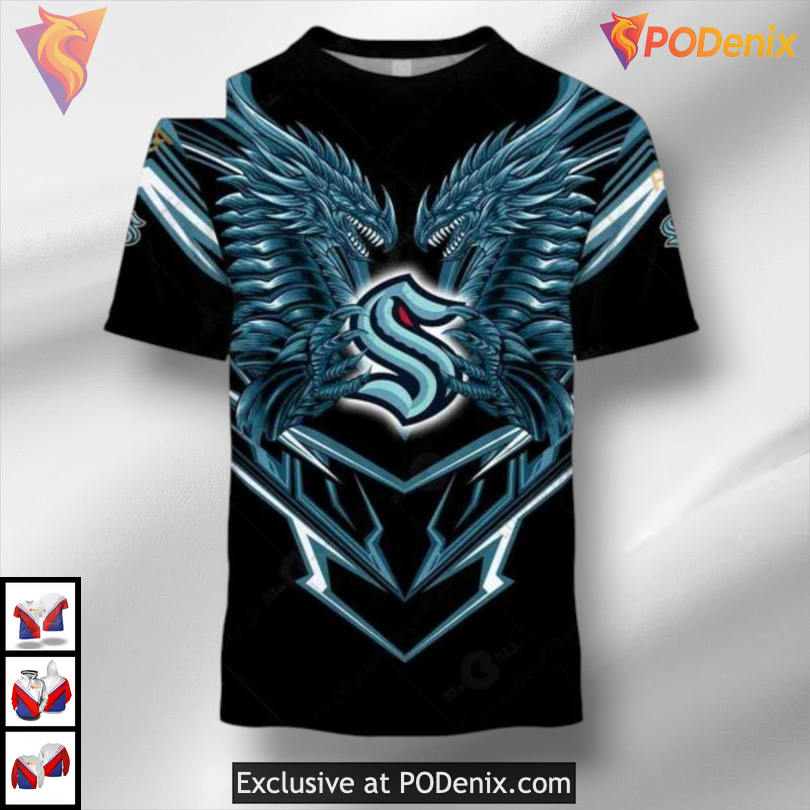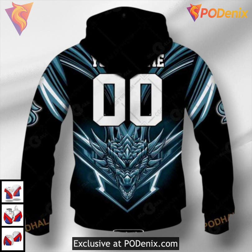 Product Information for Dragon Artwork Graphic Edition Custom Custom Number Seattle Kraken Hoodie 3D: