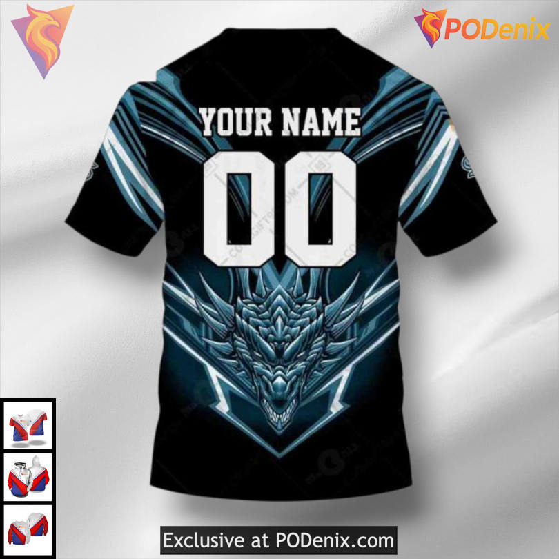 The Custom Number Seattle Kraken Hoodie showcases vibrant dragon artwork, capturing the essence of fandom with its eye-catching design. The intricate details celebrate the spirit of the Seattle Kraken, making it a perfect addition to any fan’s collection.