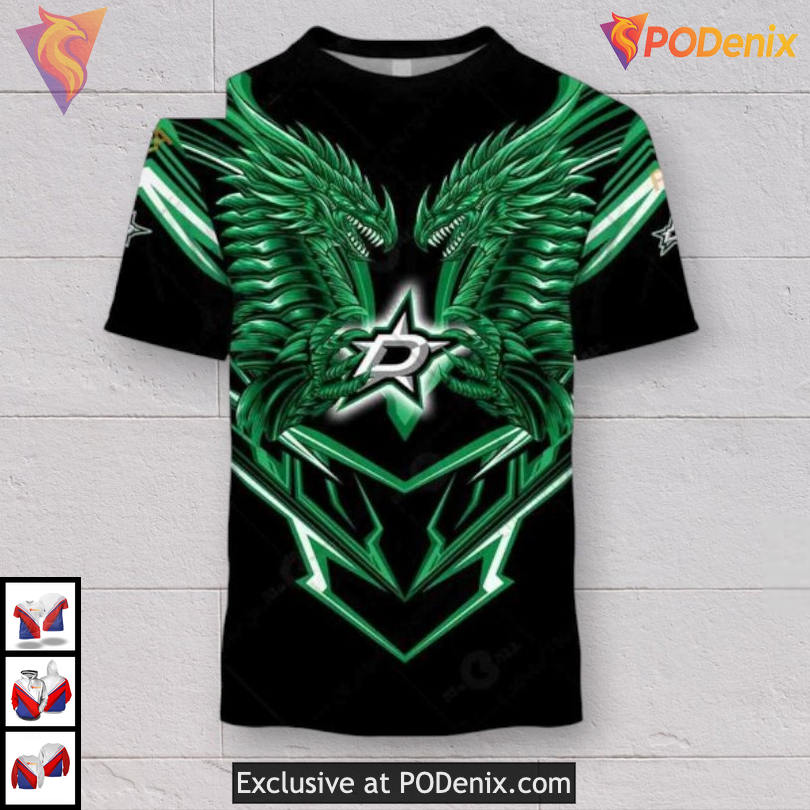 Product Information for Dragon Artwork Inspired Edition Dallas Stars Unisex Hoodie 3D Shirt:
