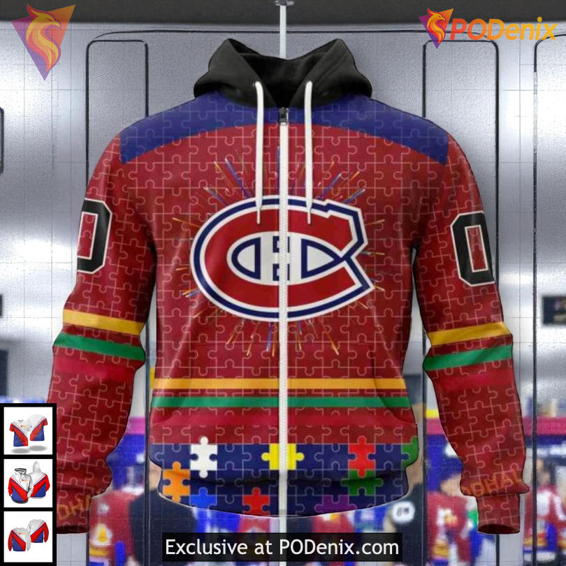 Product Information for Fearless Against Autism Theme NHL Montreal Canadiens Youth Hoodie 3D: