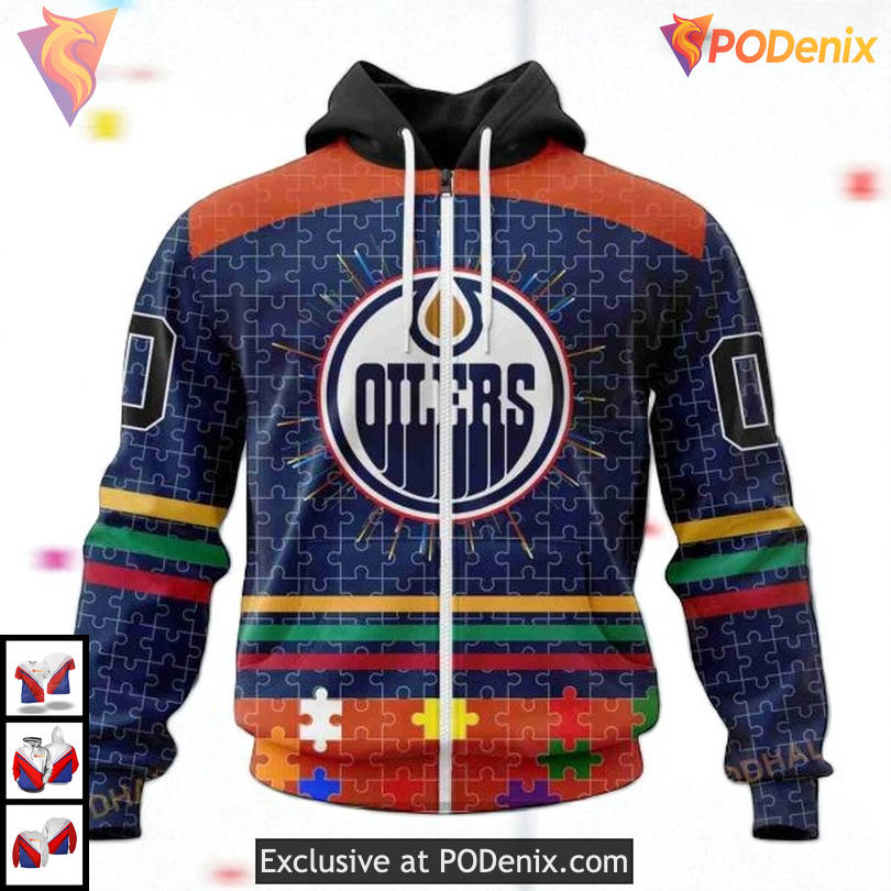Product Information for Fearless Against Autism Tribute NHL Edmonton Oilers Kids Hoodie 3D: