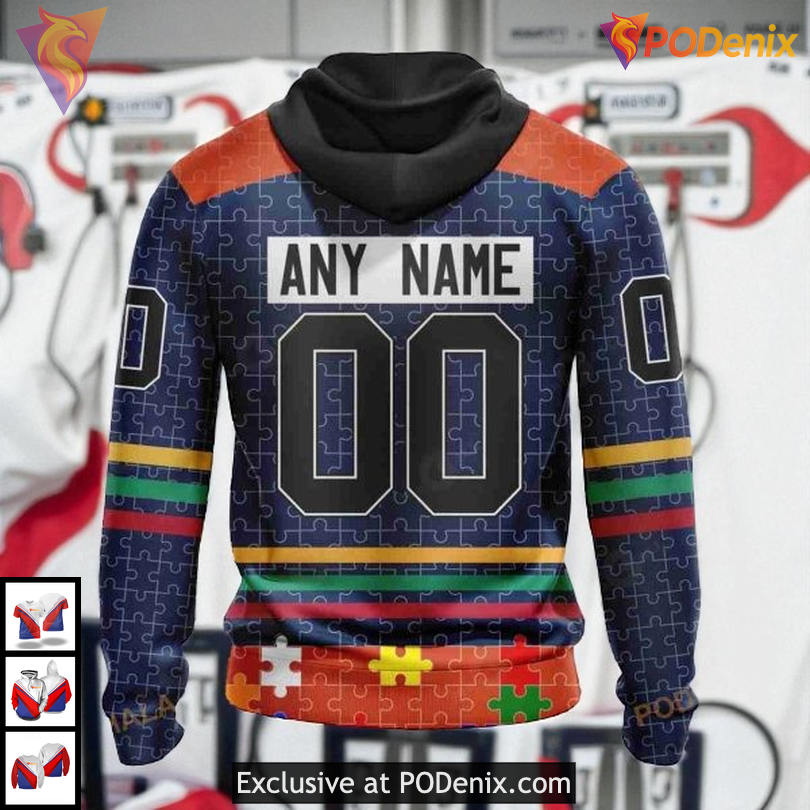 Promoting autism awareness through sports, this hoodie also reflects the unity and solidarity found in the fan community, bringing people together for a common cause while celebrating the spirit of the game.