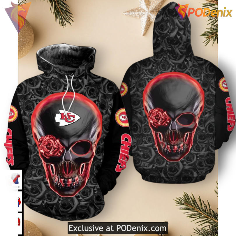 Product Information for Fearless Skull Rose Kansas City Chiefs Hoodie, Vintage Limited 3D Edition: