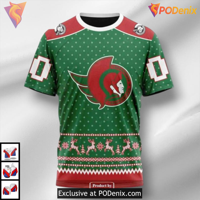Product Information for Festive Holiday Apparel NHL Ottawa Senators Mens Hoodie 3D: