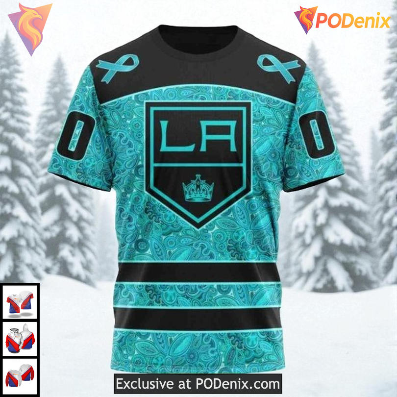 Custom Los Angeles Kings 3D Hoodie for Ovarian Cancer Awareness and Fandom Pride
