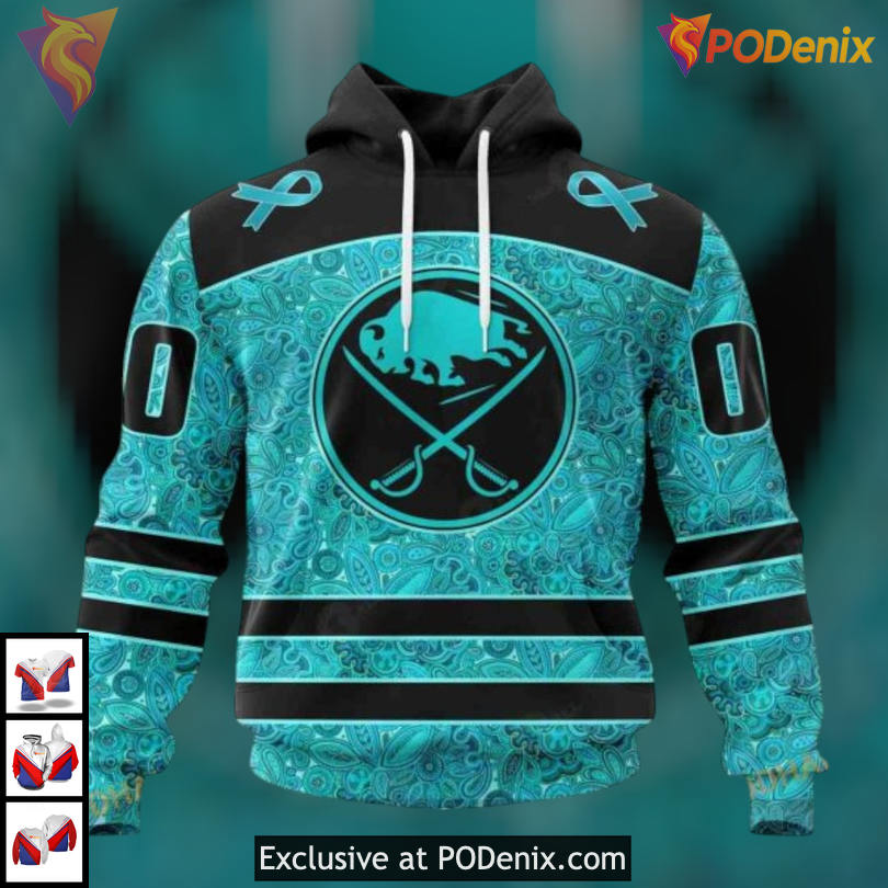 Product Information for Fight Ovarian Cancer Awareness NHL Buffalo Sabres Sweatshirt Hoodie 3D Design: