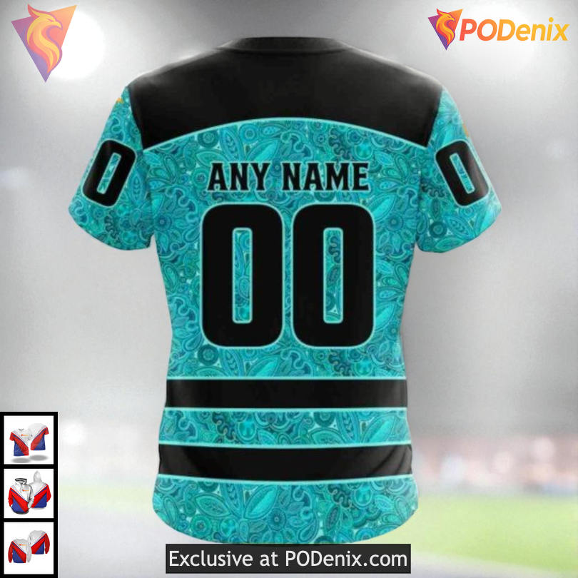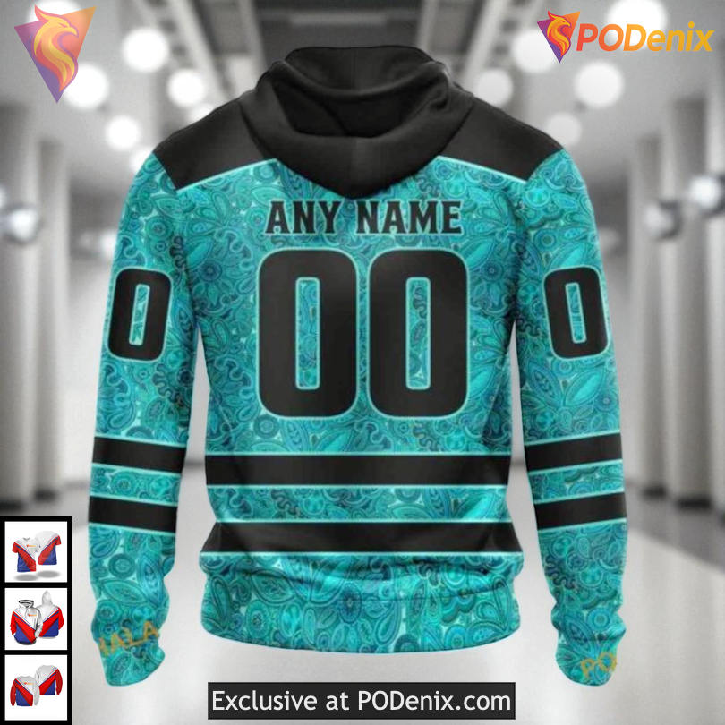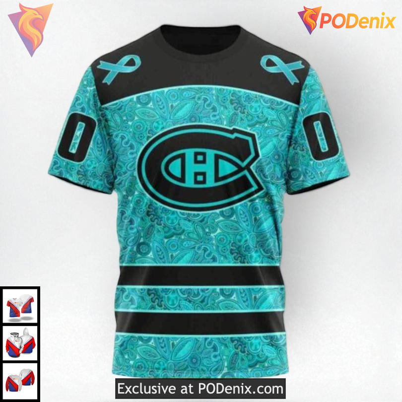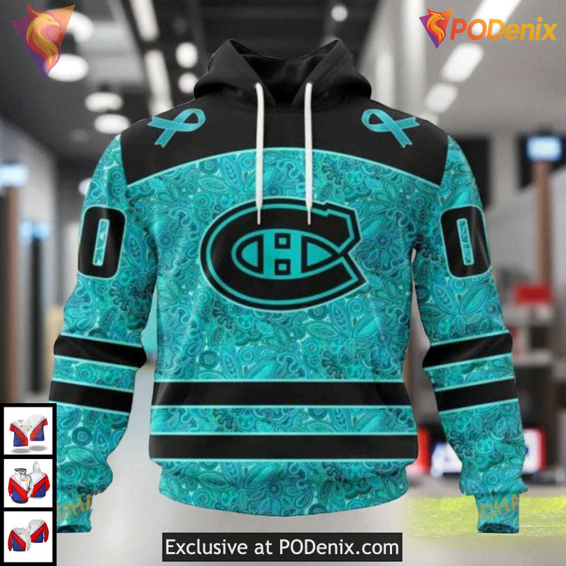 The Custom Name Montreal Canadiens Hoodie showcases a vibrant design that captures the energy of the Montreal Canadiens’ spirit. Featuring striking graphics that highlight ovarian cancer awareness, this hoodie blends fandom with a powerful message of support.