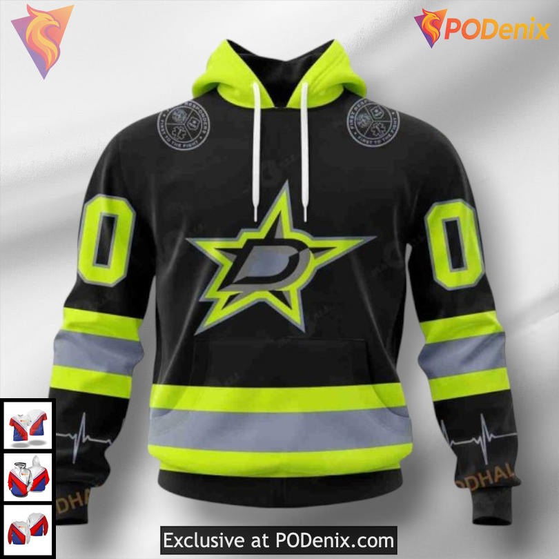 Custom Firefighter Tribute Dallas Stars Hoodie – Honor the Brave with Team Spirit