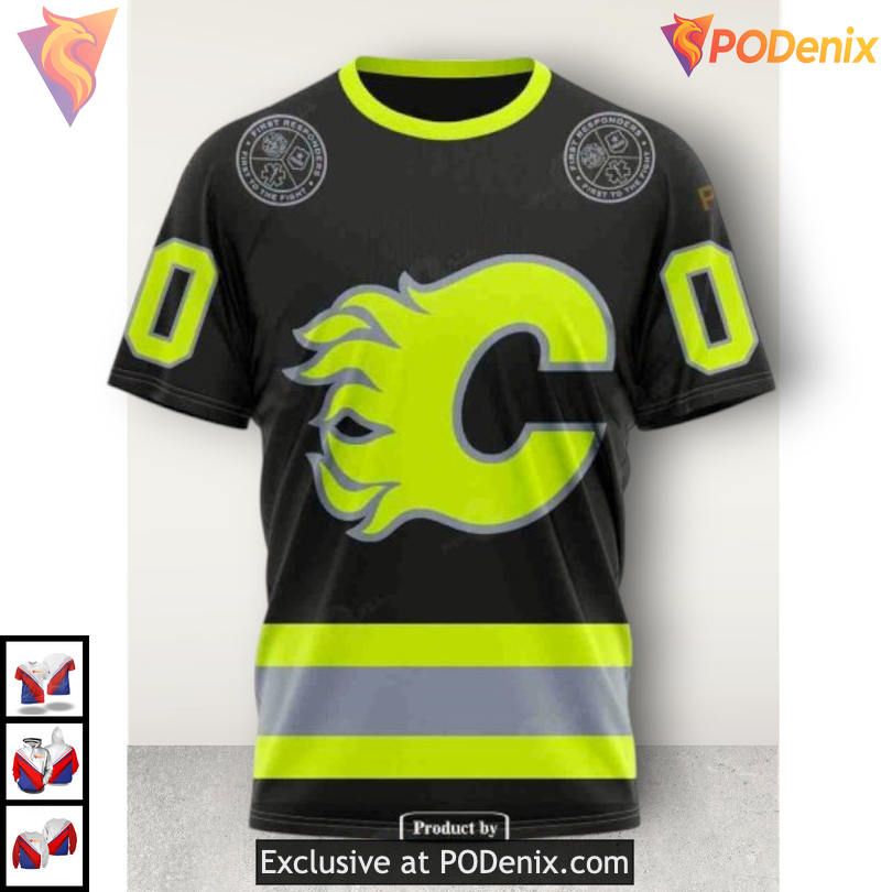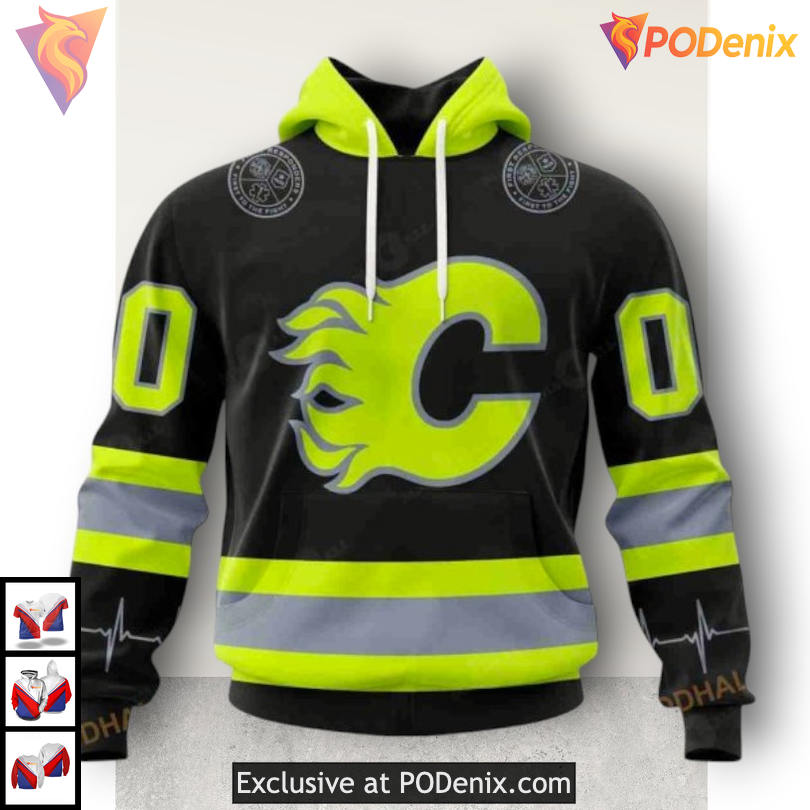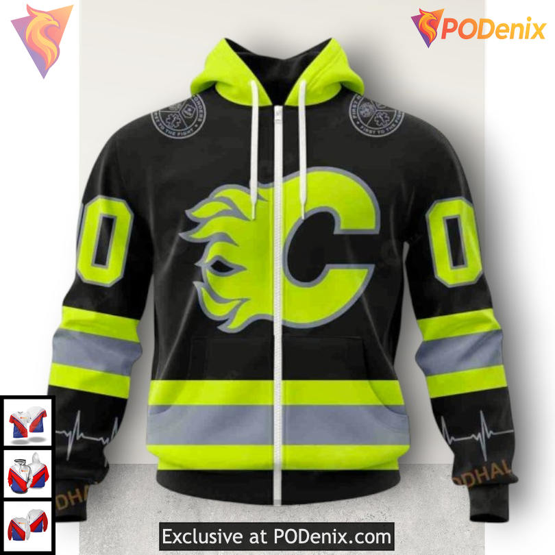 Firefighter Tribute Calgary Flames Apparel: A Bold 3D Zip Up Hoodie