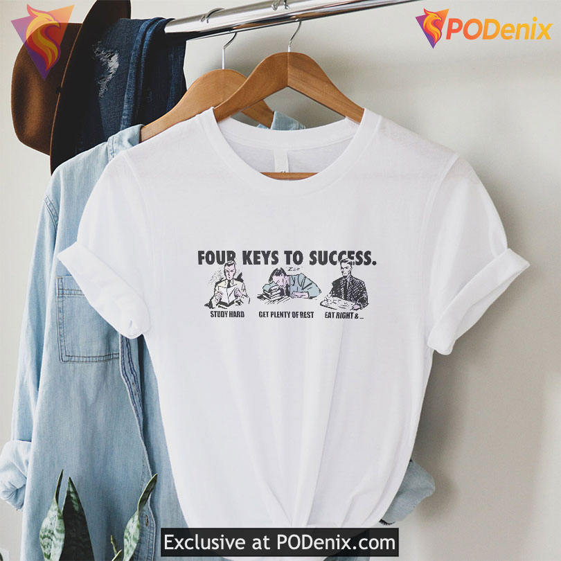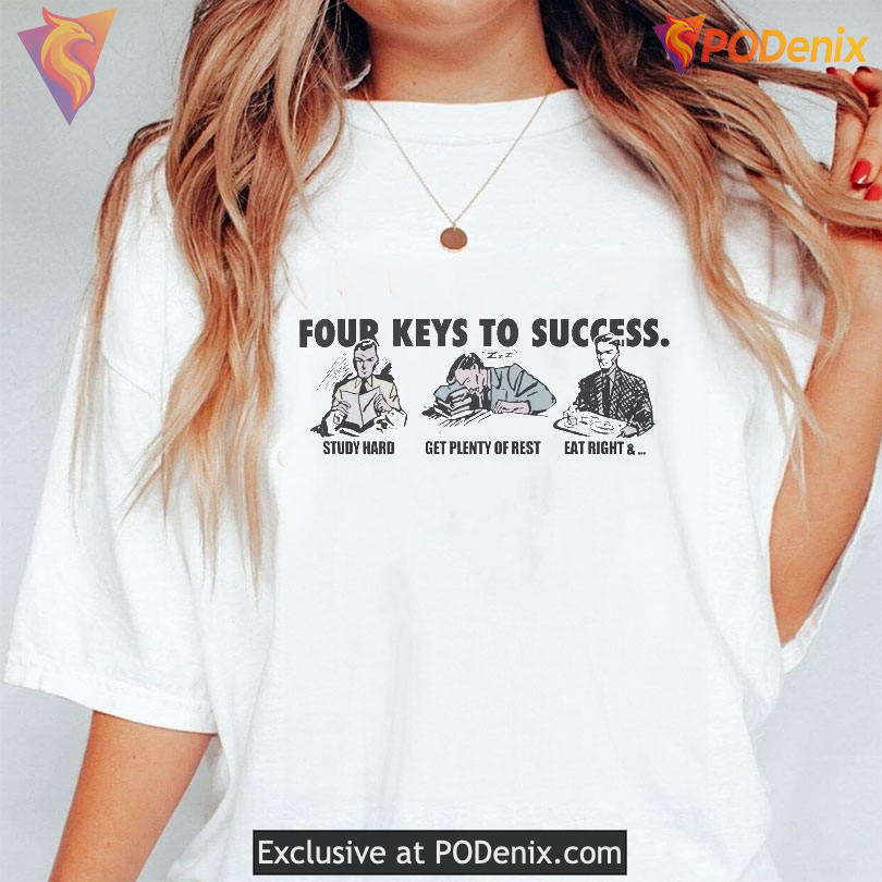 Wear the four keys to success t shirt to inspire yourself and others, encouraging a community of achievers who understand the value of perseverance and determination.