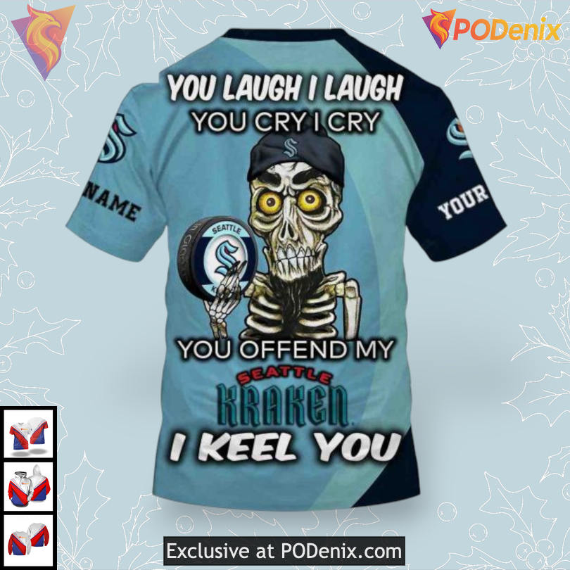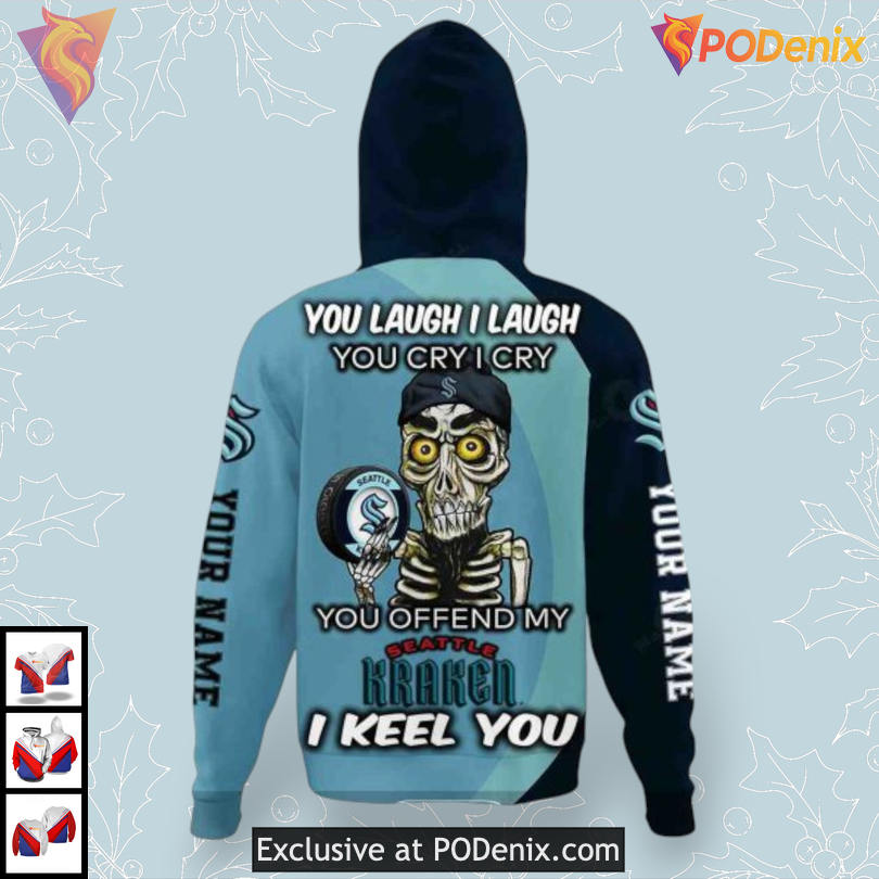Product Information for Funny Quote You Laugh I Cry Edition Custom NHL Seattle Kraken Winter Hoodie 3D: