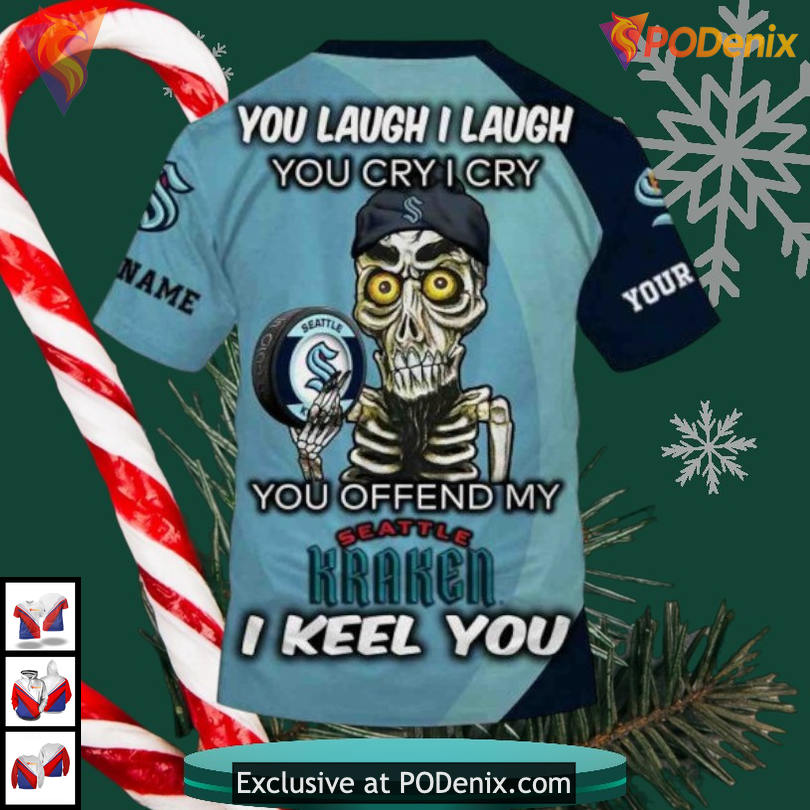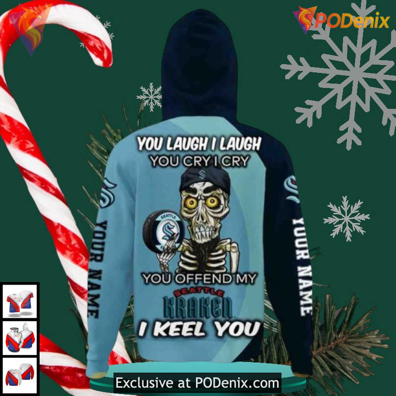 Product Information for Funny Quote You Laugh I Cry Theme Custom NHL Seattle Kraken Full Print Hoodie 3D: