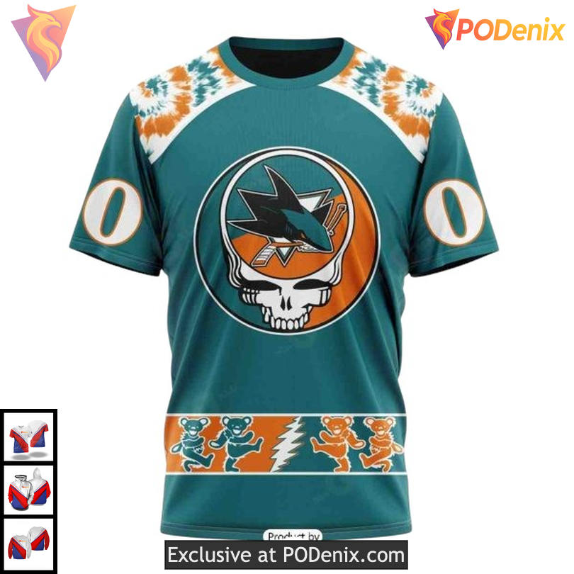 Product Information for Grateful Dead Band Inspired Artwork Custom San Jose Sharks Full Print Hoodie 3D: