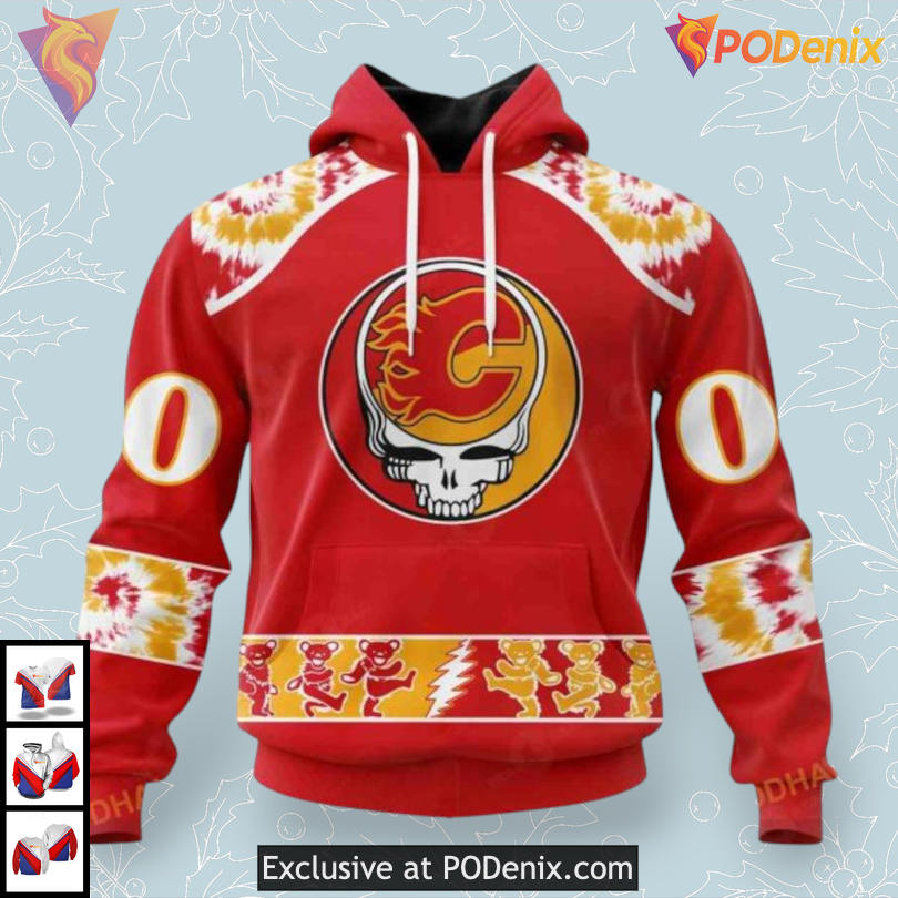 Product Information for Grateful Dead Inspired Personalized Calgary Flames 3D Hoodie Design: