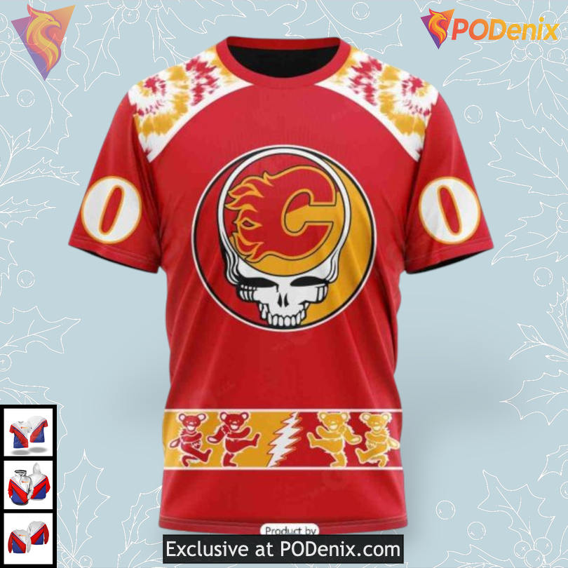 Personalized Calgary Flames 3D Apparel Featuring Grateful Dead Elements and Iconic Design