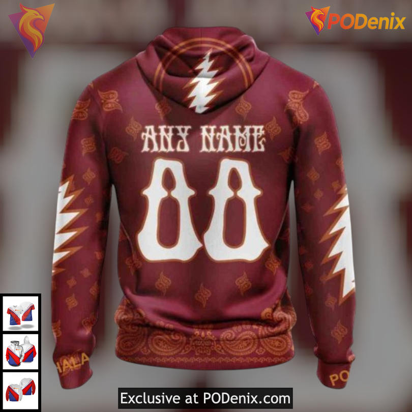 The Arizona Coyotes Personalized 3D Hoodie showcases a vibrant design that captures the spirit of the Grateful Dead. Featuring unique motifs that blend retro colors and energetic graphics, this hoodie is a must-have for fans who appreciate a creative twist on sportswear.
