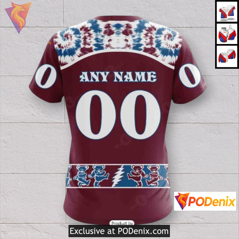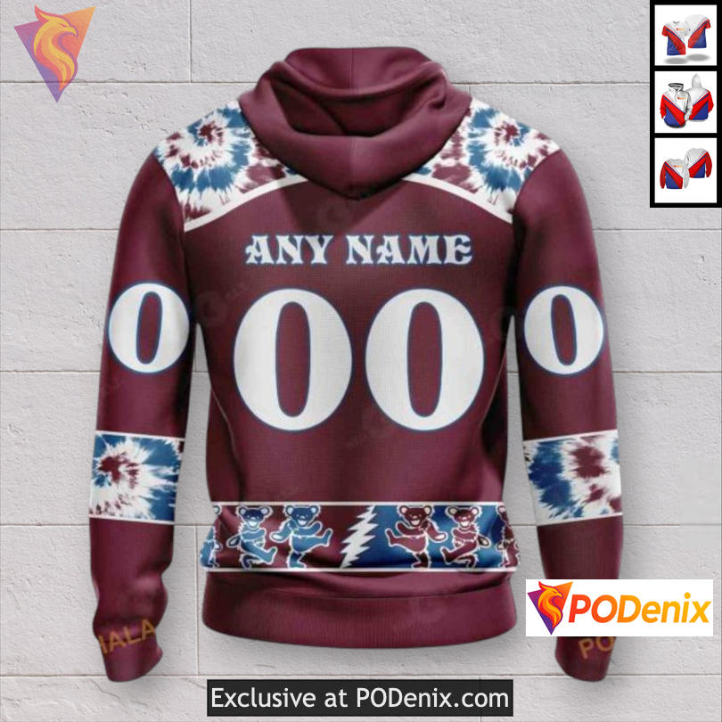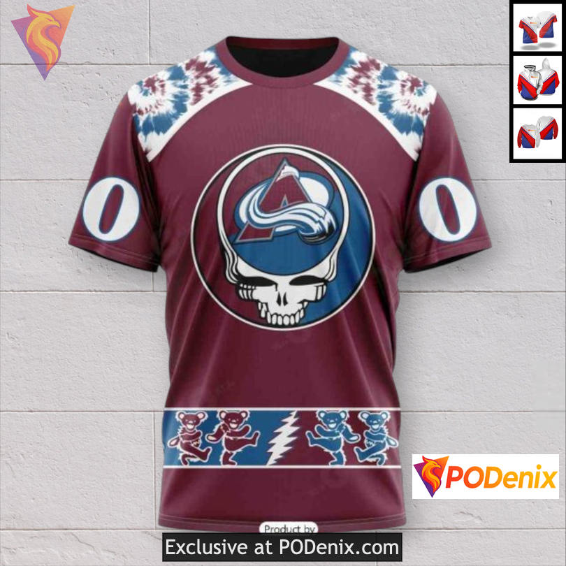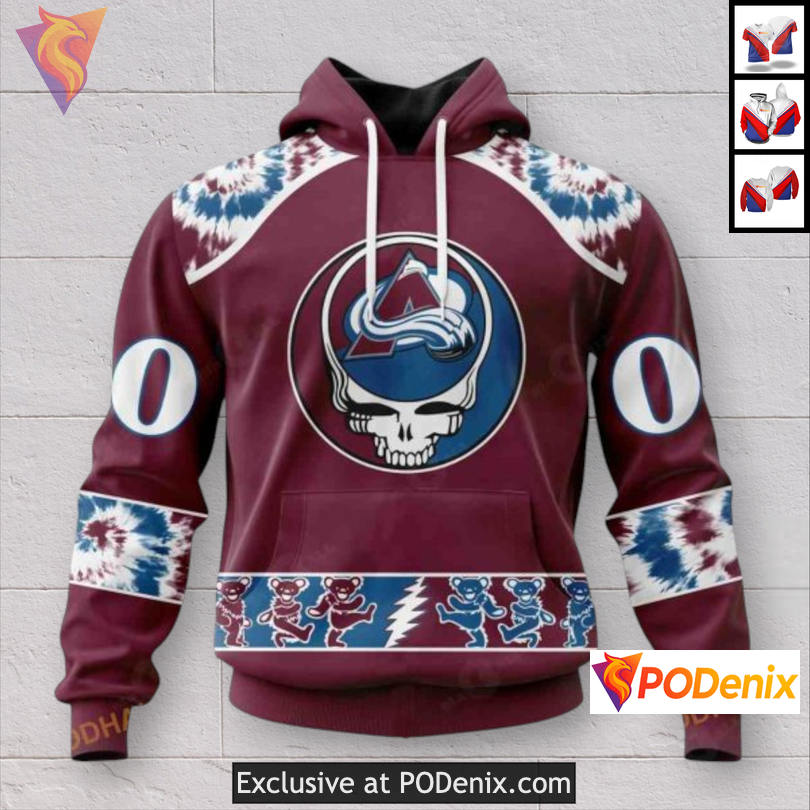Experience the vibrant energy of the Colorado Avalanche Full Zip Hoodie, featuring stunning Grateful Dead tribute artwork. This hoodie showcases iconic motifs that resonate with fans, blending a retro vibe with a modern twist for a unique sportswear statement.