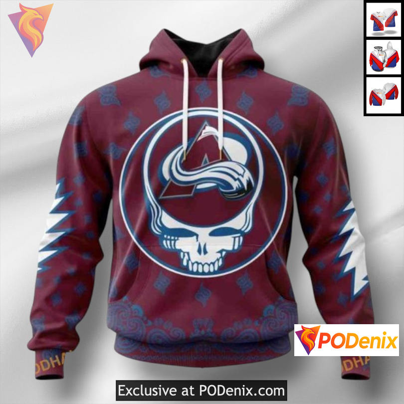 Custom 3D Colorado Avalanche Apparel: Grateful Dead Tribute Retro Hoodie