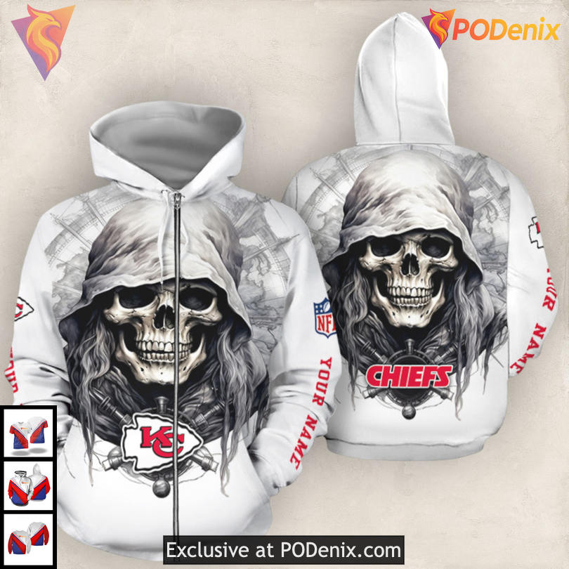 Product Information for Grim Reaper Custom Kansas City Chiefs 3D Hoodie All Over Print Edition: