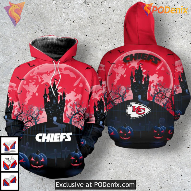 Shop the k2 spooky 3D Kansas City Chiefs hoodie for a hauntingly festive look!