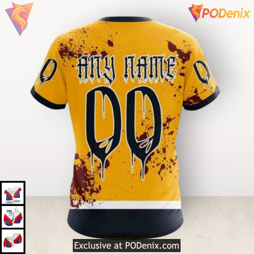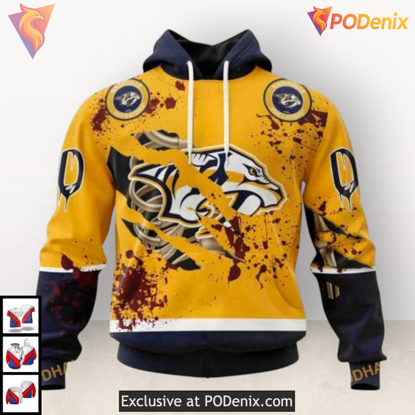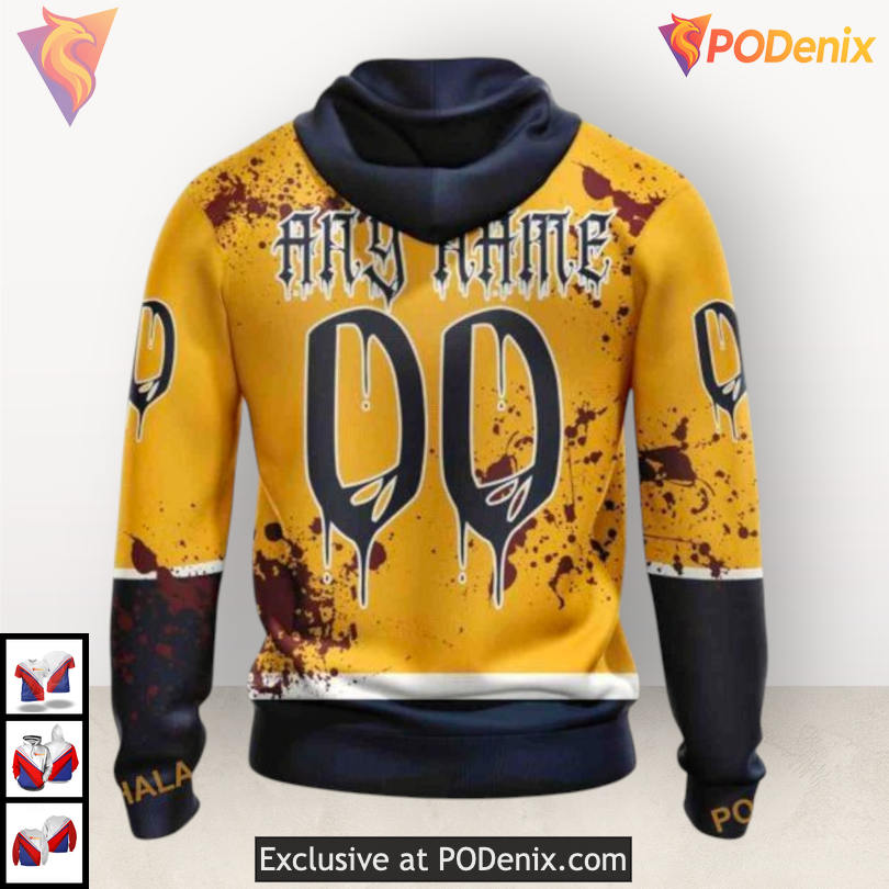 Embrace the Halloween spirit and showcase your unique fandom with the Custom Number Nashville Predators Hoodie, designed for those who want to bring both style and team pride to their festive celebrations.