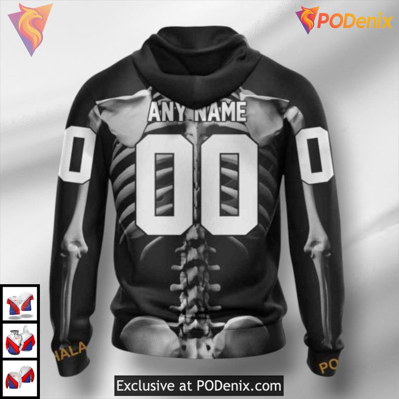 The Carolina Hurricanes 3D Hoodie features an eye-catching design inspired by Halloween skeleton motifs, blending spooky aesthetics with team spirit. This hoodie captures the essence of the season, showcasing vibrant colors and striking graphics that resonate with fans and festive vibes alike.