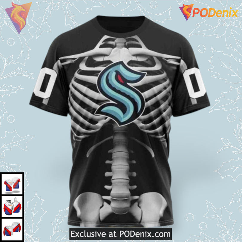 Product Information for Halloween Skeleton Costume Concept NHL Seattle Kraken Unisex Hoodie 3D: