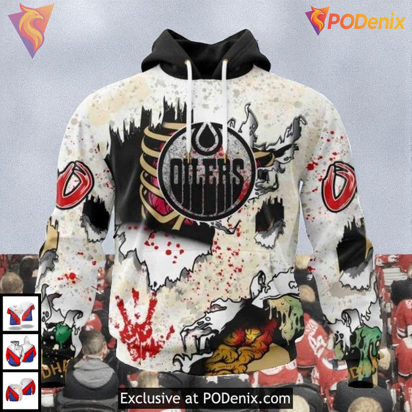 Discover the Ultimate Edmonton Oilers 3D Zombie Costume Hoodie for Halloween Fun