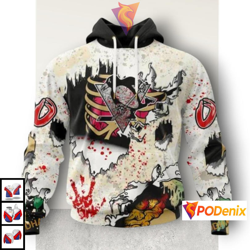 Product Information for Halloween Zombie Costume Theme NHL Custom Number Pittsburgh Penguins Hoodie 3D: