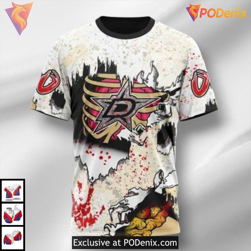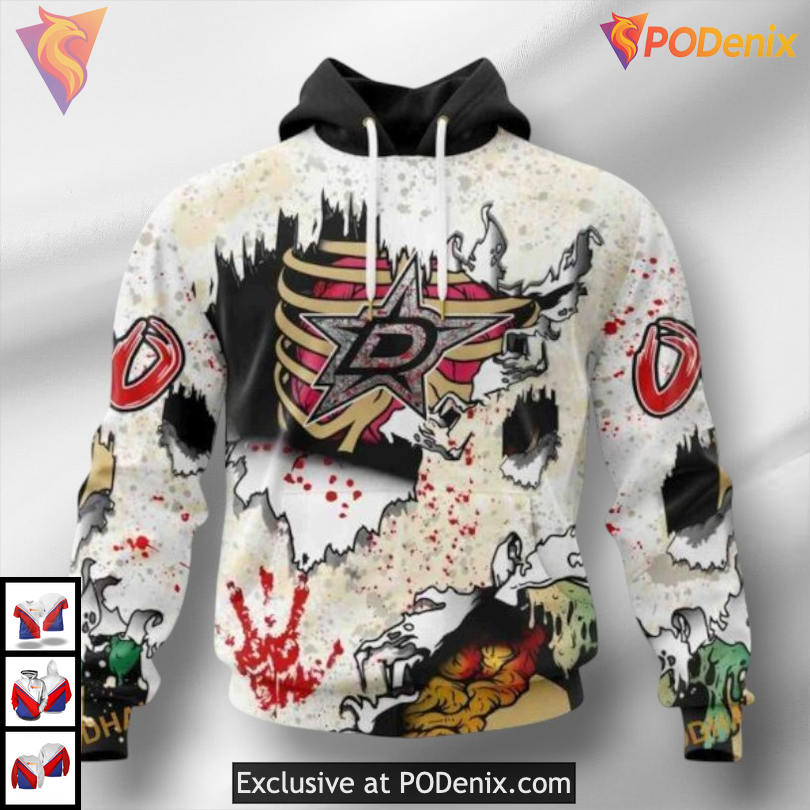 With custom dallas stars zombie style apparel, you can express your unique sports identity while celebrating the spooky season. This hoodie serves as a conversation starter and a statement of your unwavering support for the team.
