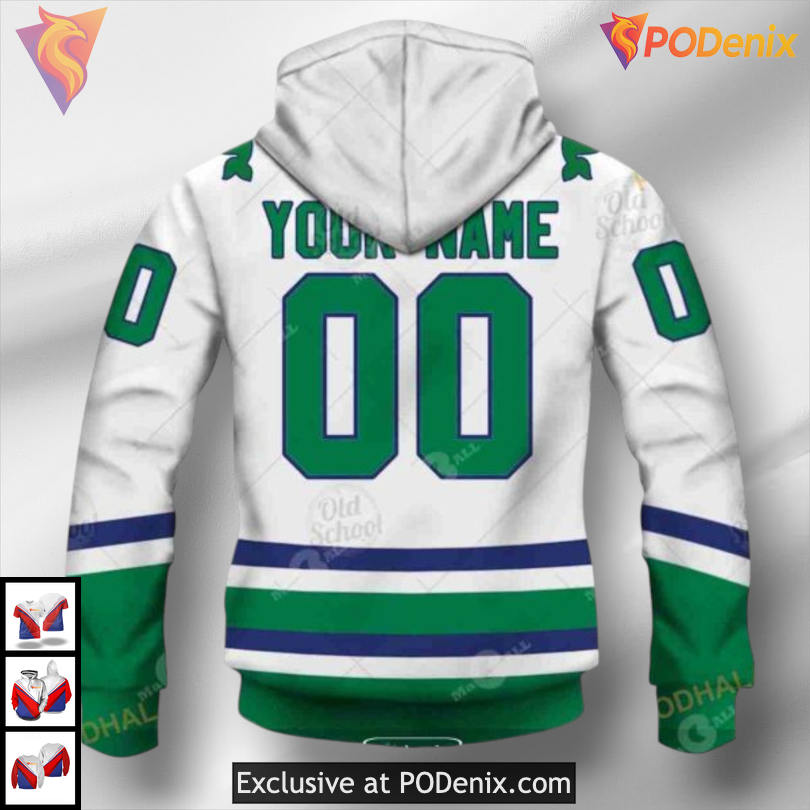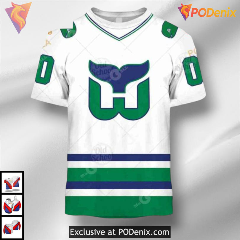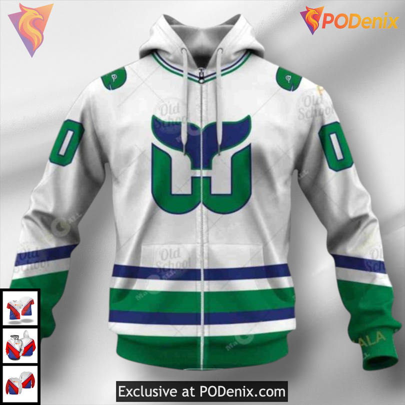 Product Information for Hartford Whalers Vintage Throwback Carolina Hurricanes All Over Print Hoodie 3D: