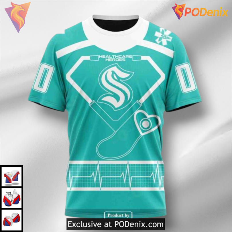 Product Information for Healthcare Heroes Appreciation Edition Custom Seattle Kraken Graphic Hoodie 3D: